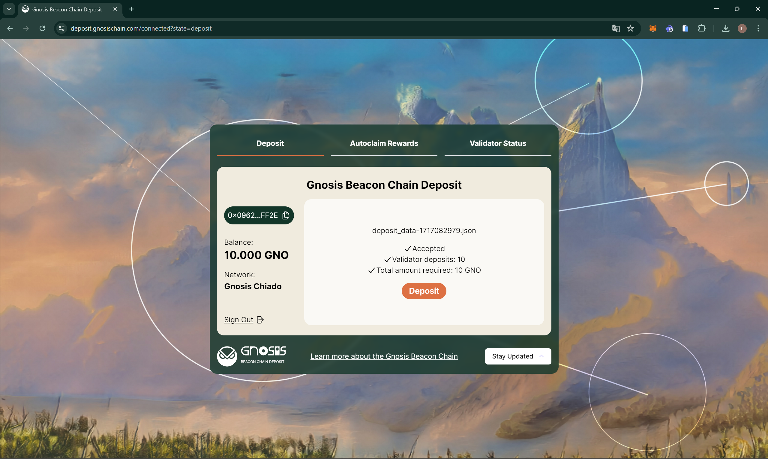 - Ensure that you have an adequate amount of GNO in your wallet to deposit to all pending validators listed in your
