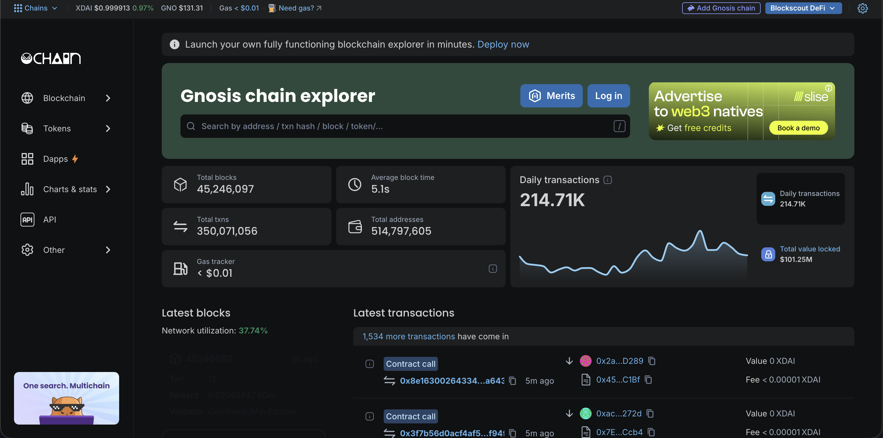 BlockScout is a full-featured, open-source explorer for Gnosis Mainnet, Chiado Testnet and many other chains. The Gnosis explorer is available here.